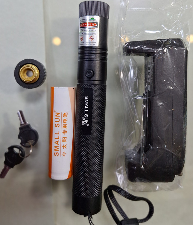 نور نقطه ای این لیزر برد زیادی داره حدودا ۳ کیلومتر که با چشم میشه دید.مارک اسمال سان روی خودش حک شده که نشان از اصالت کالا داره