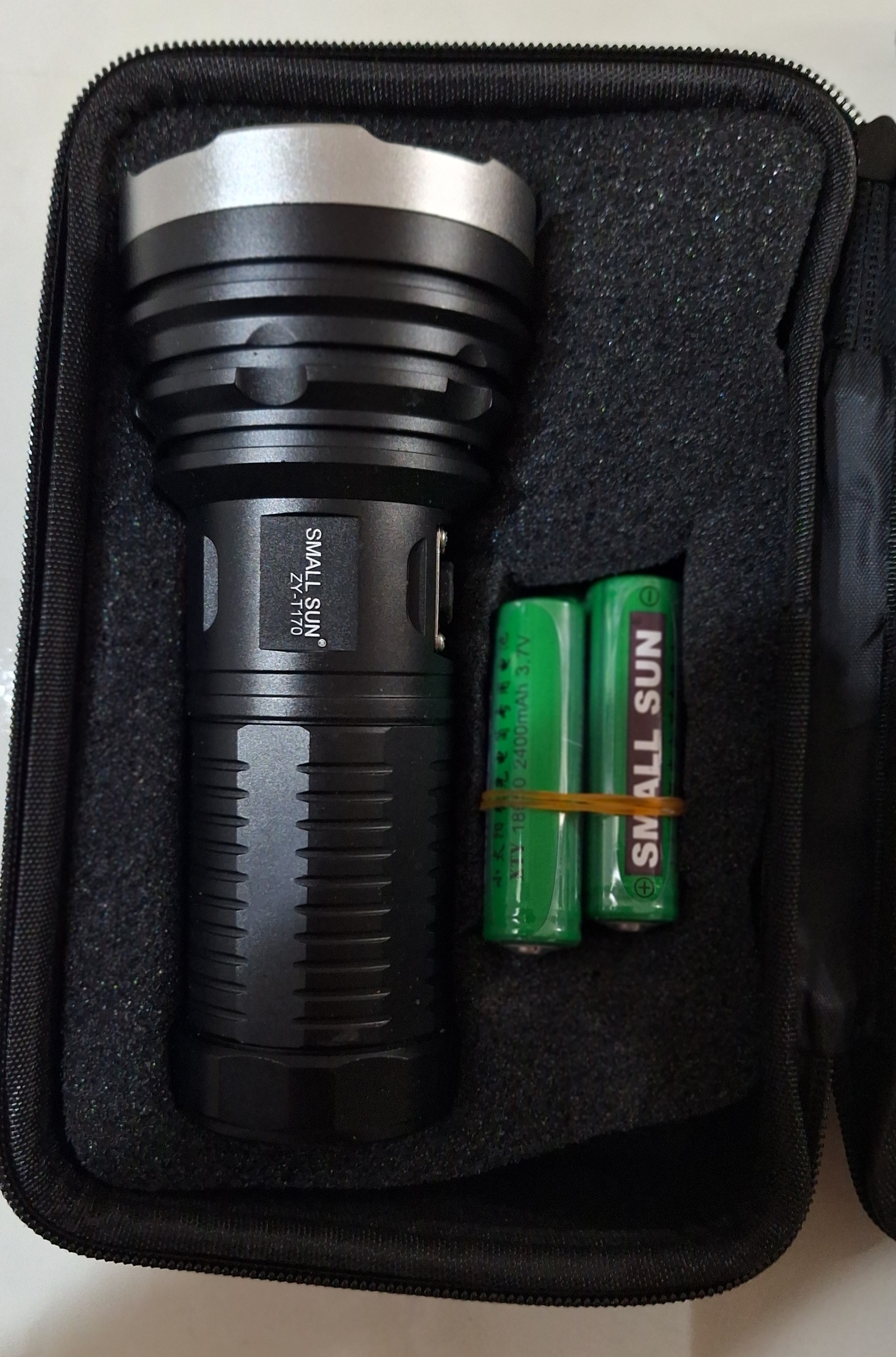 چراغ قوهzyT170 برند اسمال سان،دارای بند،شارژر،۴عدد باطری اصلی اسمال سان،کیف حمل،نور مستقیم با کیفیت پیج فروشگاه yegan.vizhe_shop