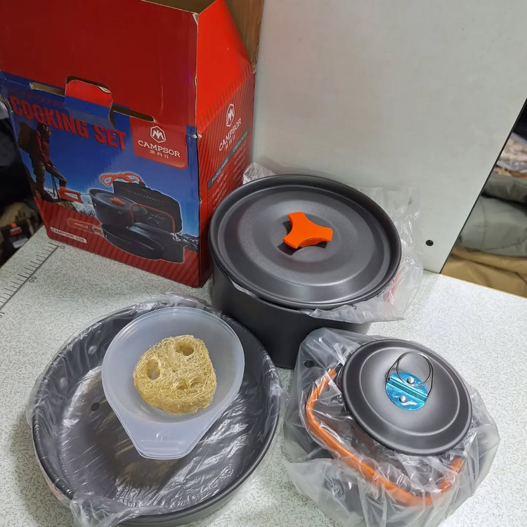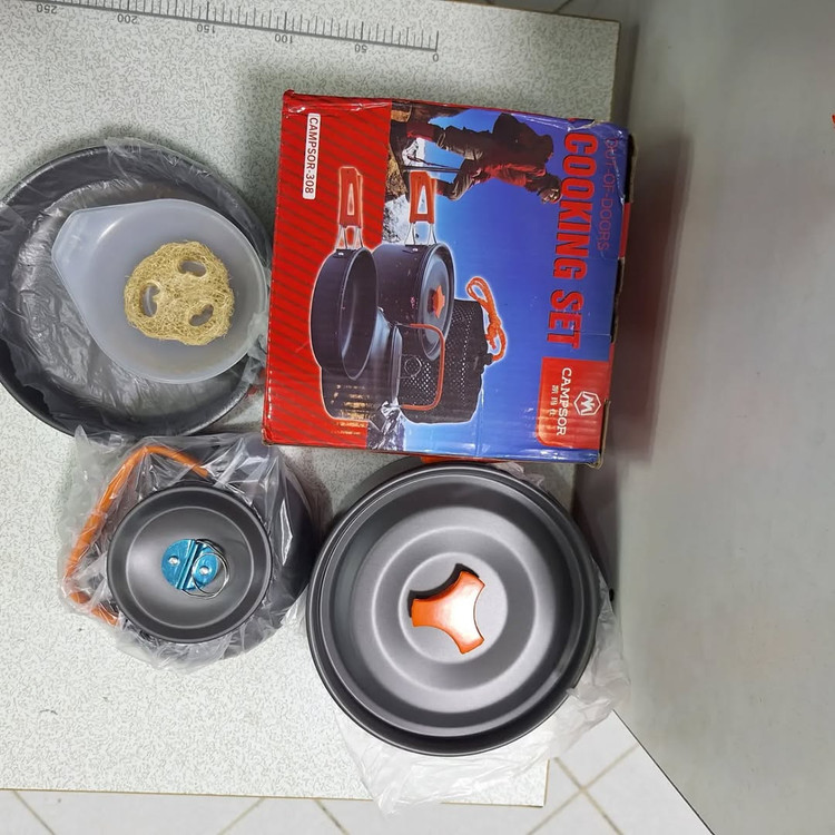 ست ۳ تیکه ظروف کمپ: دارای ماهیتابه،کتری و قابلمه و...