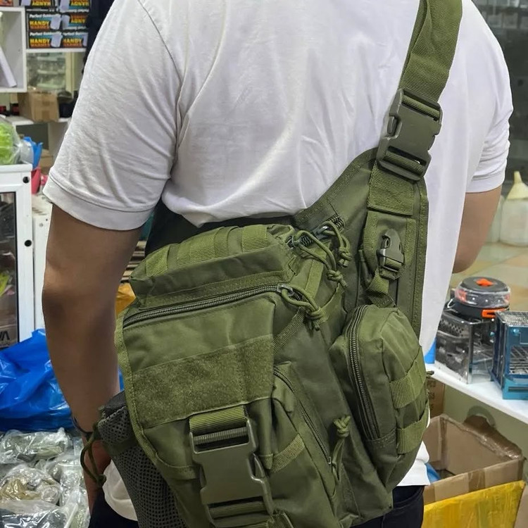 کیف دوشی تاکتیکال سایز بزرگ کیفیت درجه ۱ جنس برزنتی ضدآب درسه رنگ مشکی خاکی سبز