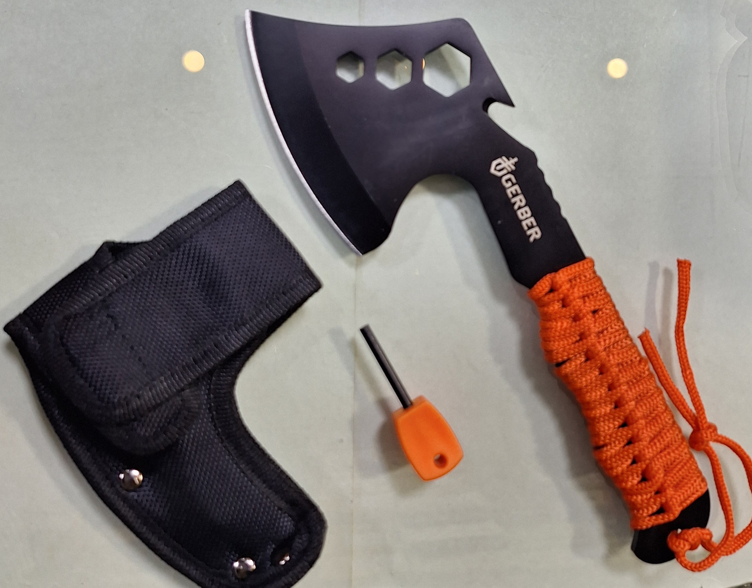 تبر کمپینگ و کوهنوردی،برند گربر اصلی،دارای چخماق،قلاف،دربازکن