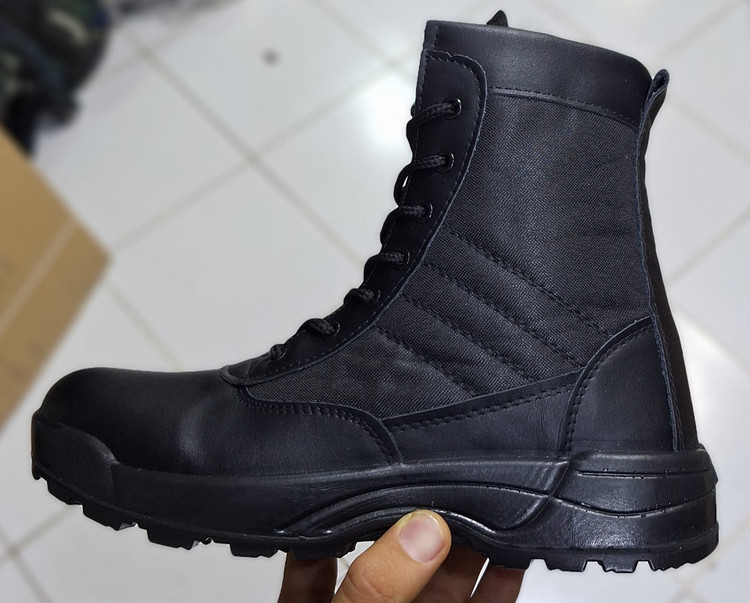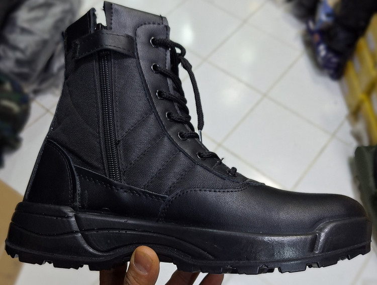 پوتین اسوات مشکی طبی زیپی رویه چرم صاف کفه تزريق مدل ایرانی