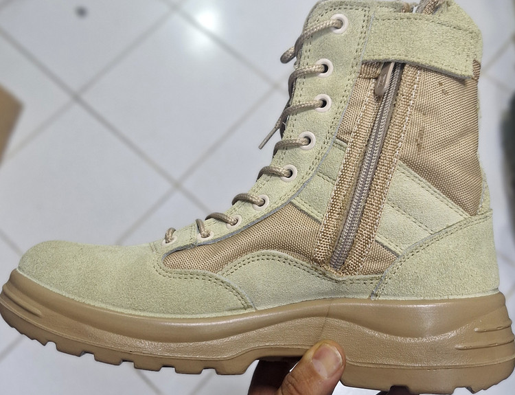 نیم بوت زیپی خاکی چرم،کفه تزریق،نرم و محکم،تولید تبریز،بالاترین کیفیت بین نیم بوت ایرانی