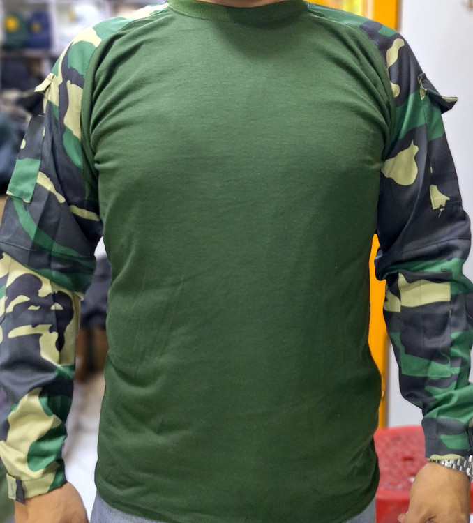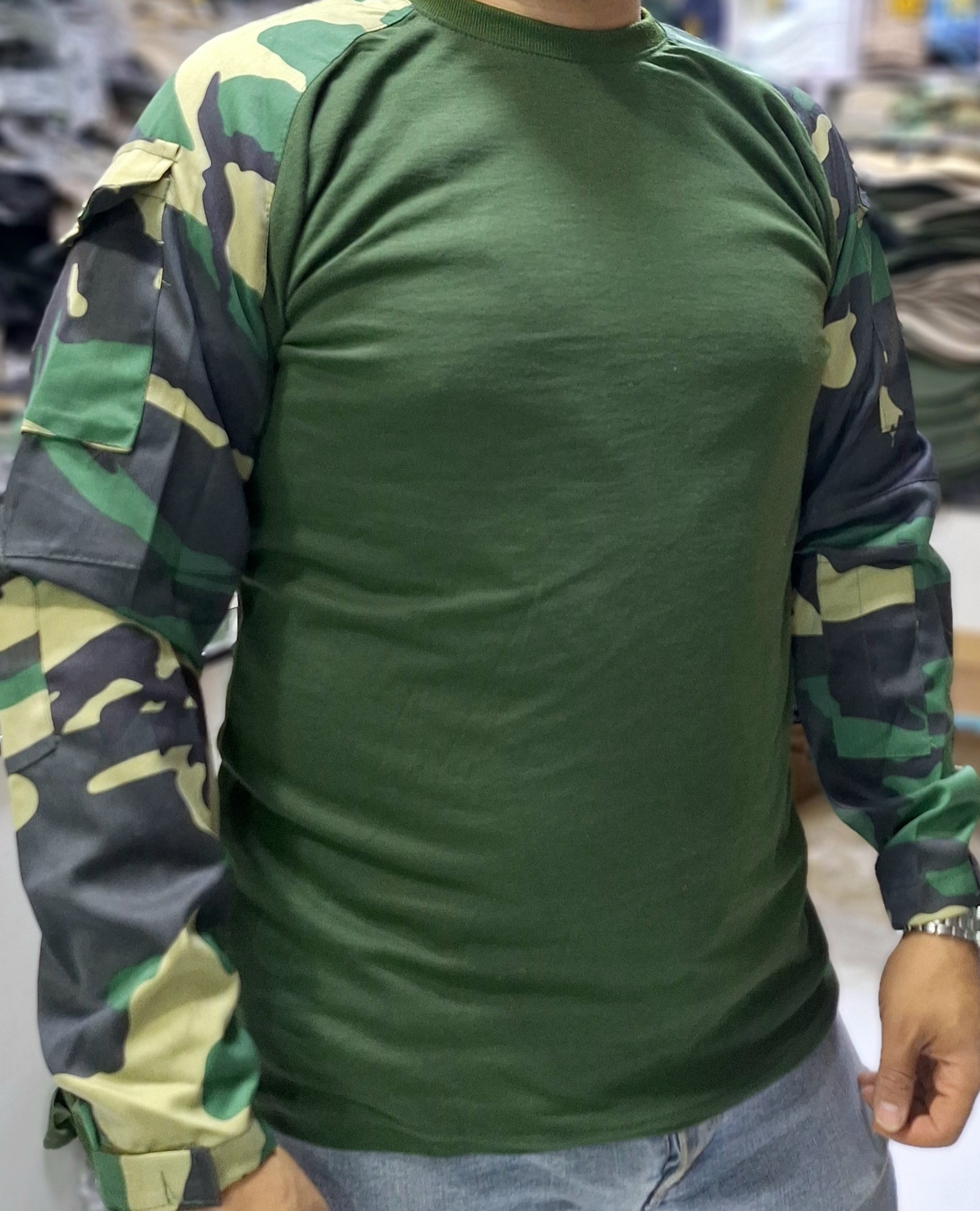 مسیف تاکتیکال ایرانی سبز پلنگی،یقه گرد،تن خور عالی،آستین چسبی،جیب دار،پارچه کشی تن خور مانند تصویر