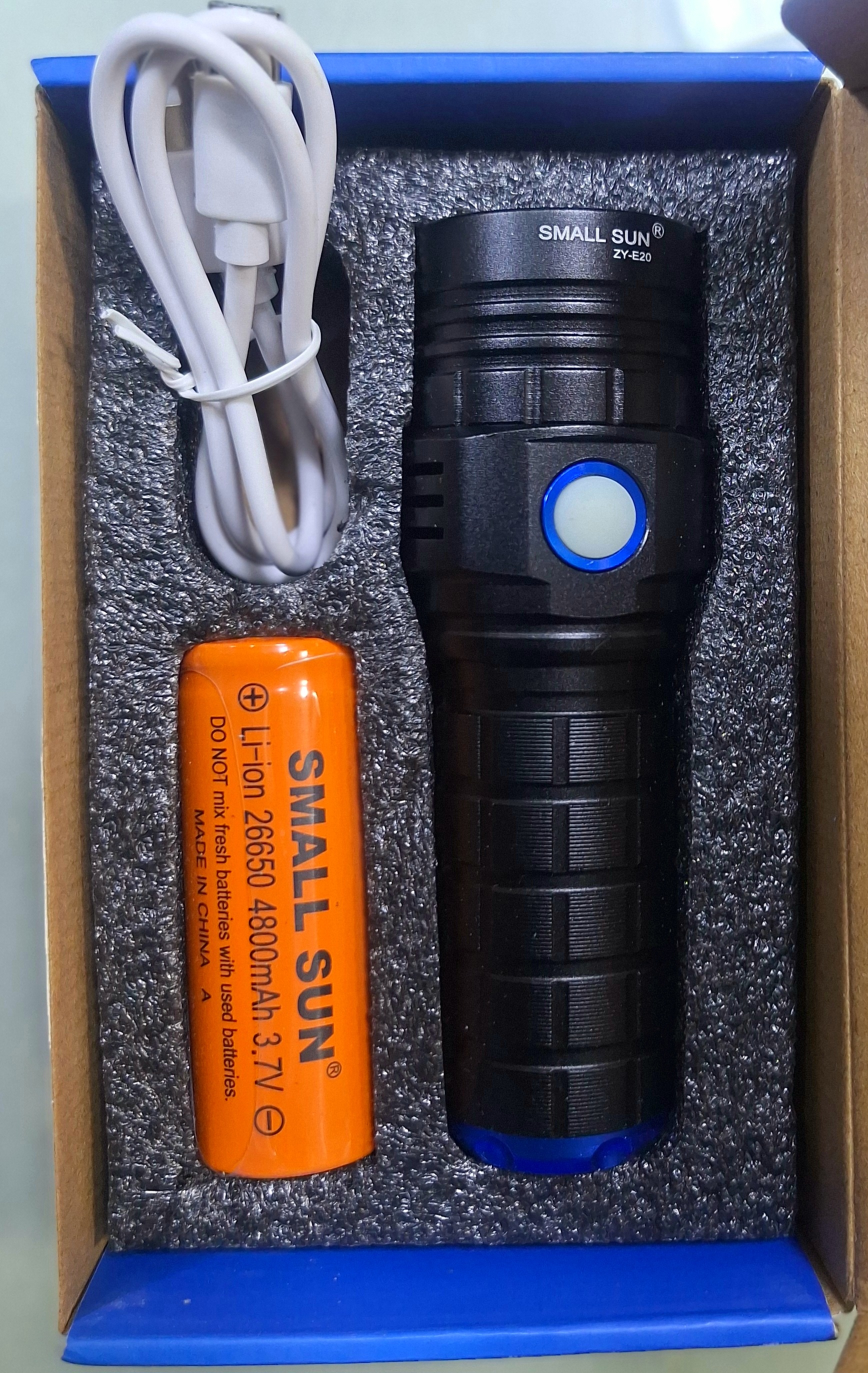 چراغ قوه مدلE20 شرکت اسمال سان نور مستقیم.خوش دست،برد ۵۰۰ متر مستقیم